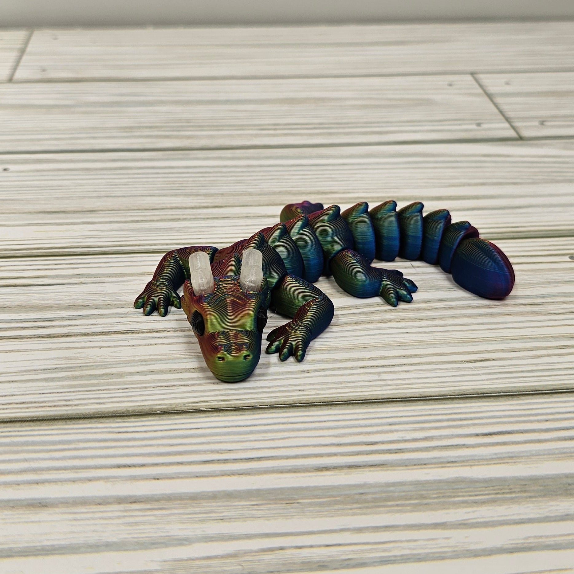 These adorable flexy dragons are available today. Measures 4 inches in length.